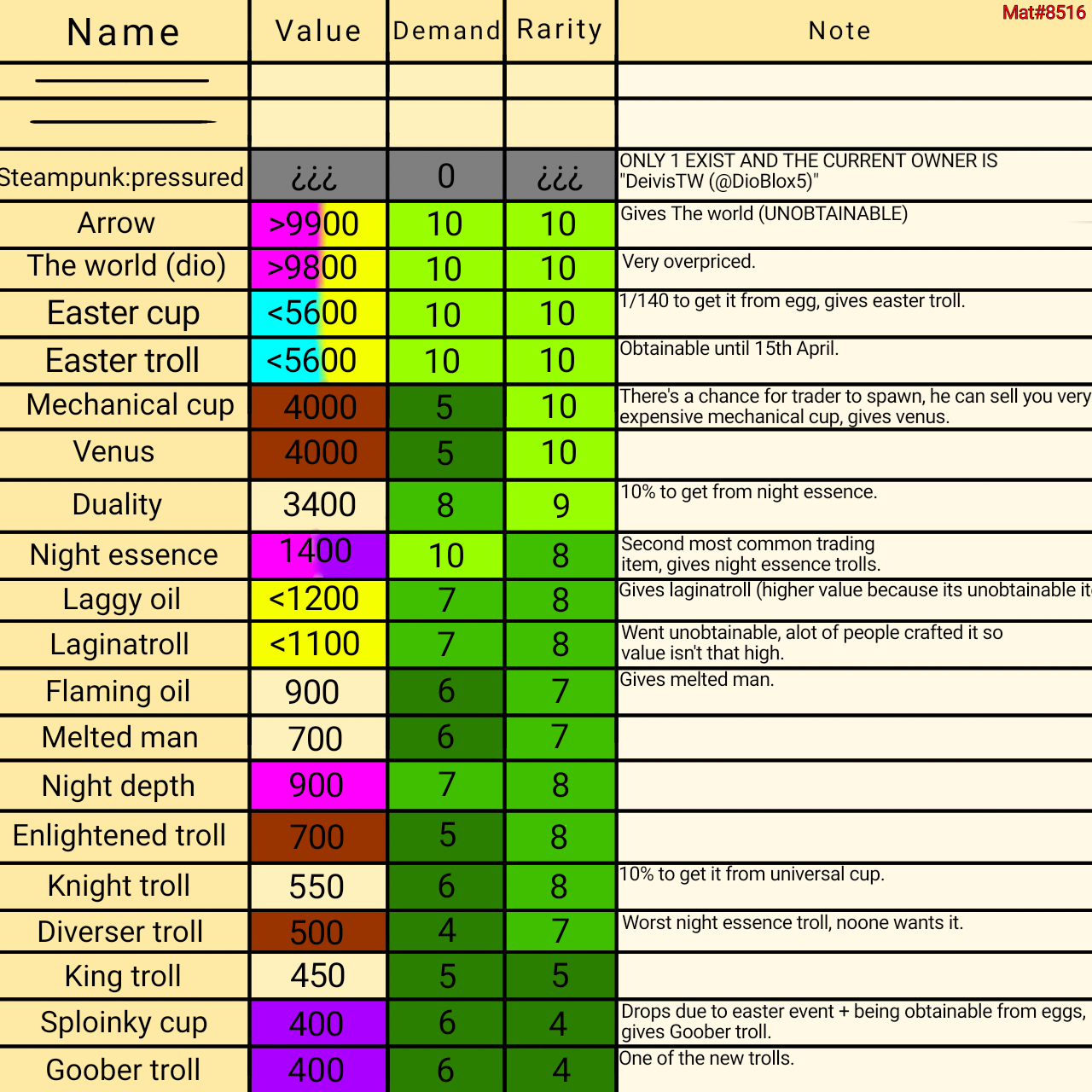 This is Mat’s Advanced Value List for World of Trollge Value, you can visit the game Trello for more information.